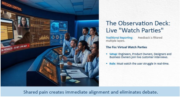 • Break the “Game of Telephone:” Implement strategies like “Virtual Watch Parties” that force engineers, designers, and business leaders to witness user struggles together in real-time