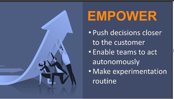 • Empower Push decisions closer to the customer. Make sure your teams are the ones with expertise. Be accountable. Enable teams to act autonomously.